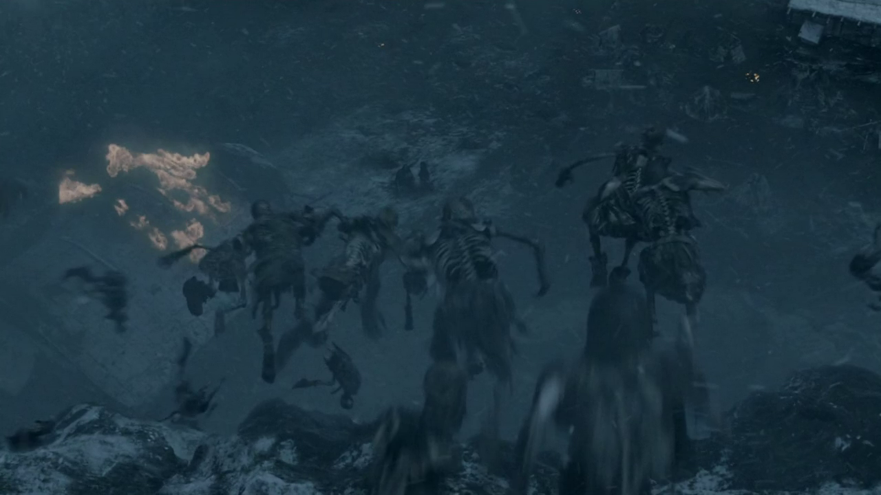 I will admit, I think the premise of ‘Wars of the Roses meets Sauron’ is a pretty cool one, but thus far the former has very much taken precedence over the latter, the looming threat of the White Walkers mostly relegated to doomy pronouncements from Sam, Maester Aemon and the Wildlings. Yes, we’ve had a few scary glimpses at them, notably during the battle at the Fist of the First Men a couple of years ago. But this was a full on supernatural battle, even bringing back (at least one of) the giants that are presumably too expensive to appear that often to battle a horde of the undead the likes of which has barely been seen since Jason and the Argonauts and Army of Darkness. Pouring through the gate and over the hilltops they came, like a much scarier version of the hyperkinetic ghouls of World War Z.