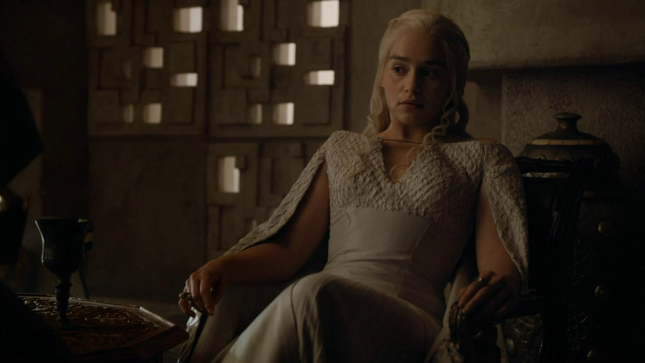 And perhaps best of all, Dany summing up the plot as a whole: “Lannister, Targaryen, Baratheon, Stark, Tyrell. They’re all just spokes in a wheel. This one’s on top, then that one’s on top; and on and on it spins, crushing those on the ground. I’m not going to stop the wheel; I’m going to break the wheel.”