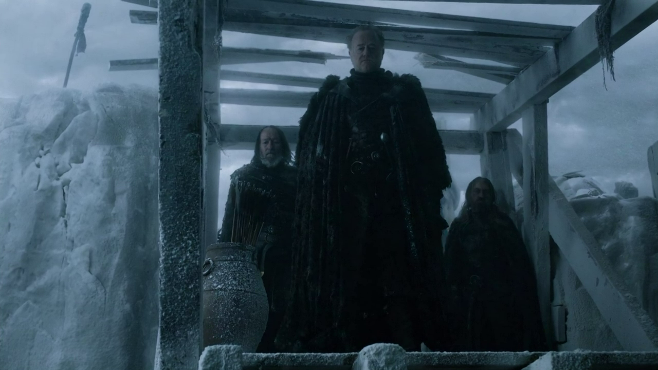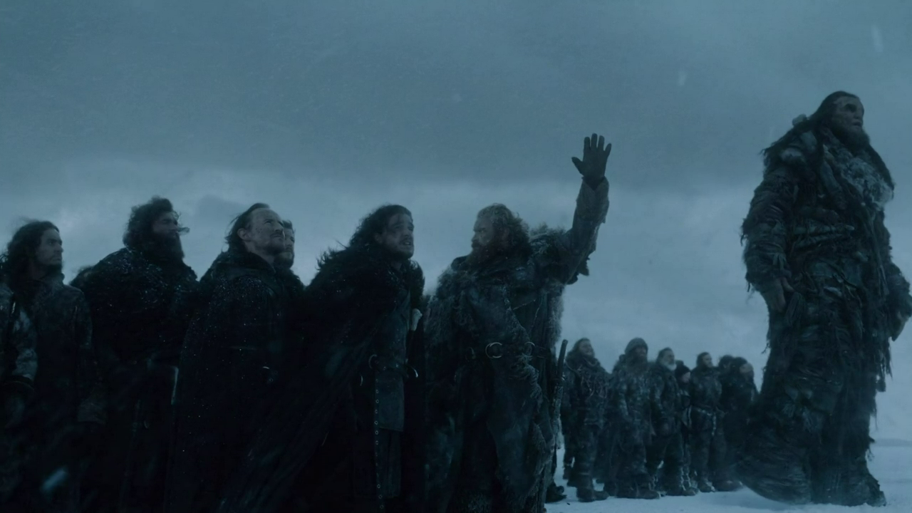 So, as the show frequently does, we were treated to a series of snapshots of where each plot has got to this week. The fallout from last week’s battle with the Walkers was touched on briefly, with a genuine bit of tension as the frosty Ser Alliser Thorne seemed to haver over whether to open the Wall to Jon and his Wilding refugees. But as we saw in last year’s battle for Castle Black, Ser Alliser may be a sourfaced git but he’s a good military commander. Presumably he sees the merit in swelling his forces with an army of Wildlings, especially since they’ve brought an honest to goodness Giant with them.