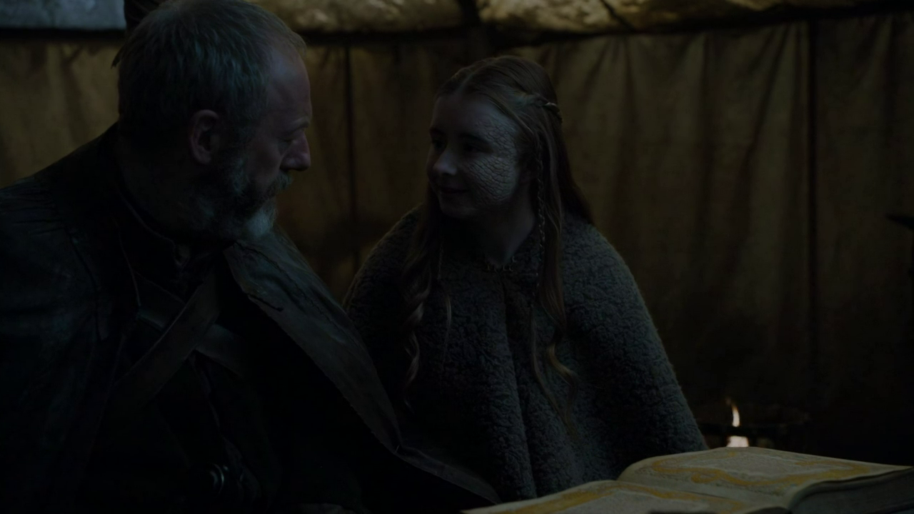 Well, this is Game of Thrones – what do you think? Young Kerry Ingram has made Princess Shireen a truly likeable girl for three seasons now, her surrogate-father relationship with the likeable Ser Davos a recurring highlight. They got another touching scene together this week, as he departed to Castle Black on an errand to bring supplies; but like a classic war movie, it was obviously a farewell rather than an au revoir.