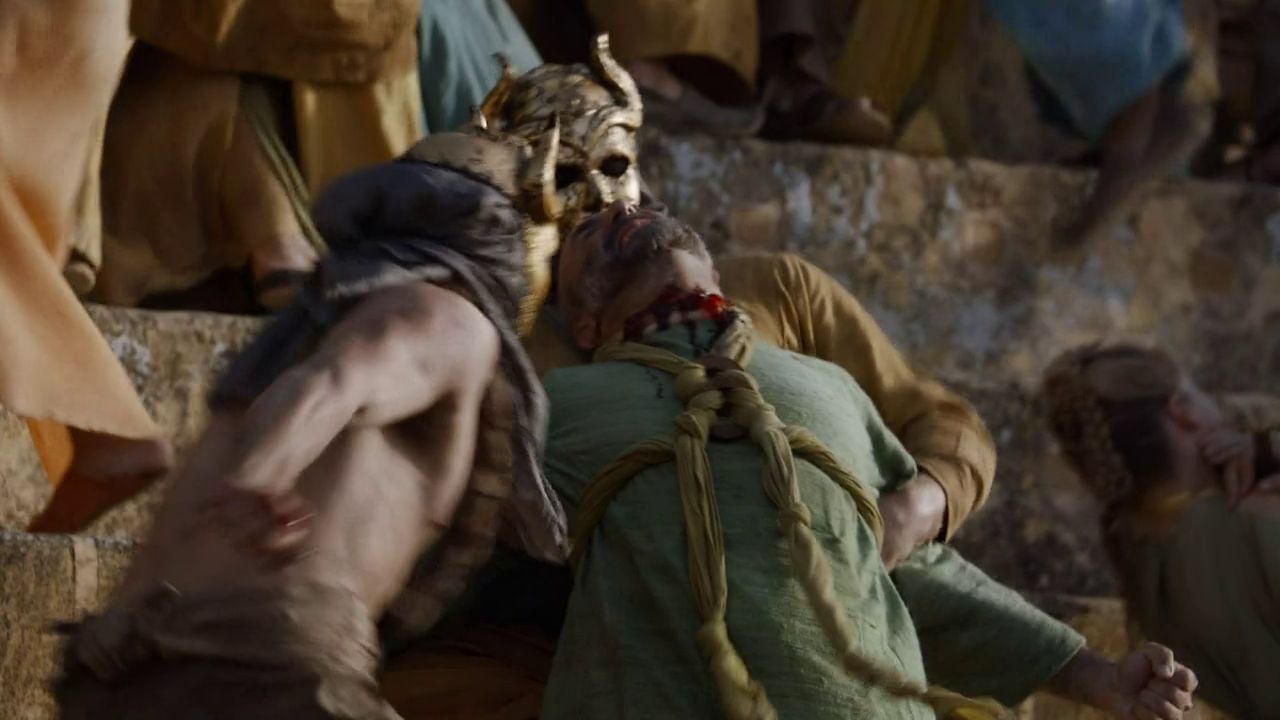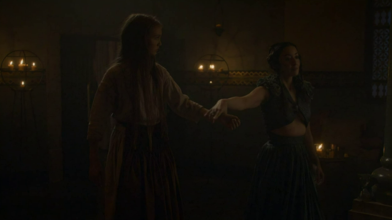 Not much gratuitous sex this week, though Ser Meryn’s insistence on ever younger prostitutes at the brothel was pretty unpleasant to behold. Thankfully, given the subject matter, the very young girl he finally settled on was actually quite modestly clothed.