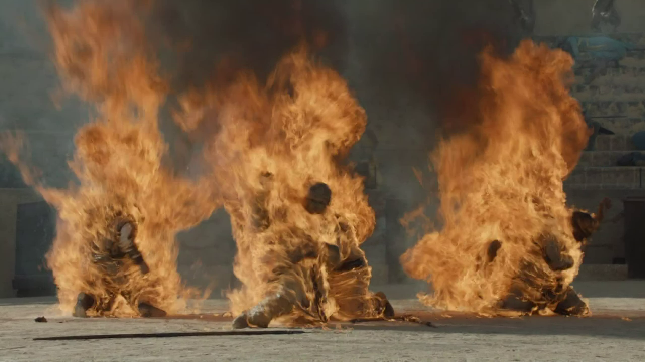 But no, here they were – and if you’d been missing the show’s usual violence, director David Nutter suddenly delivered it in spades. The gladiatorial combat in the arena was nasty enough; but then it was followed by the Sons rising from that massive audience and starting to slaughter everyone. And just when you thought it couldn’t get any more violent, Dany’s errant dragon Drogon showed up and started incinerating people left, right and centre.