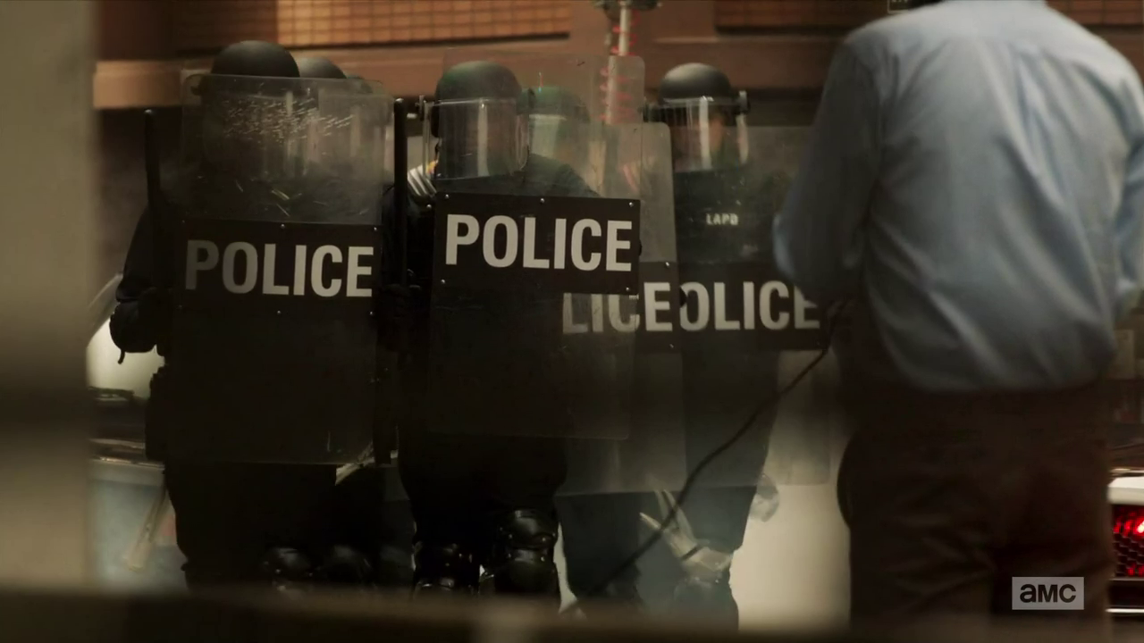 That’s also key to how these uncoordinated, shambling, slow creatures can bring about the end of civilisation – we can’t tell them from living people, sometimes people we care about. Which is why yet another apparent random shooting by the LAPD (whose reputation in this area is none too good already) sparked off the riot that was the ep’s other main plot thread.
