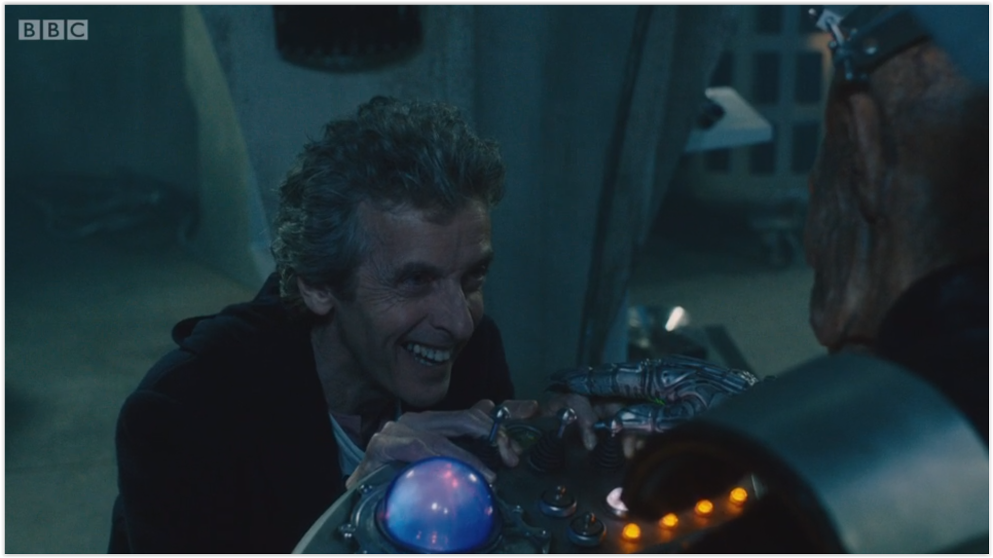 We also learned that he can actually open his eyes (which causes you to wonder why he prefers the cybernetic one), and that in itself gave Bleach’s performance a real charge. He was matched well by Capaldi, showing us a Doctor still insecure in his morality – I really liked the line, “on a good day, if I try really hard, I’m not just an old Time Lord who ran away. I’m the Doctor.”