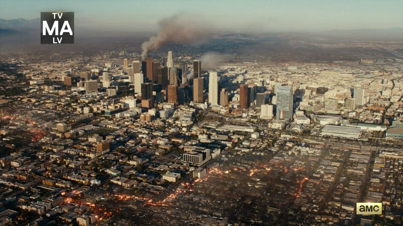 It’s felt, in part, as though the show was lacking the budget of its parent. There were some very impressive shots of the dead LA this week, presumably CG-enhanced since the city is never that quiet. But it served to underline that we hadn’t actually seen that much of the city’s fall. After our gang escaped from the downtown riot, the show’s been focused on the sinister military rule of their deceptively safe haven back in the suburbs. All those shots of the deserted LA, and of our heroes driving through staggering zombies on the deserted freeway later in the ep, seemed to underline the missed opportunity to show us some real spectacle. After all, the end of the world is usually pretty spectacular.
