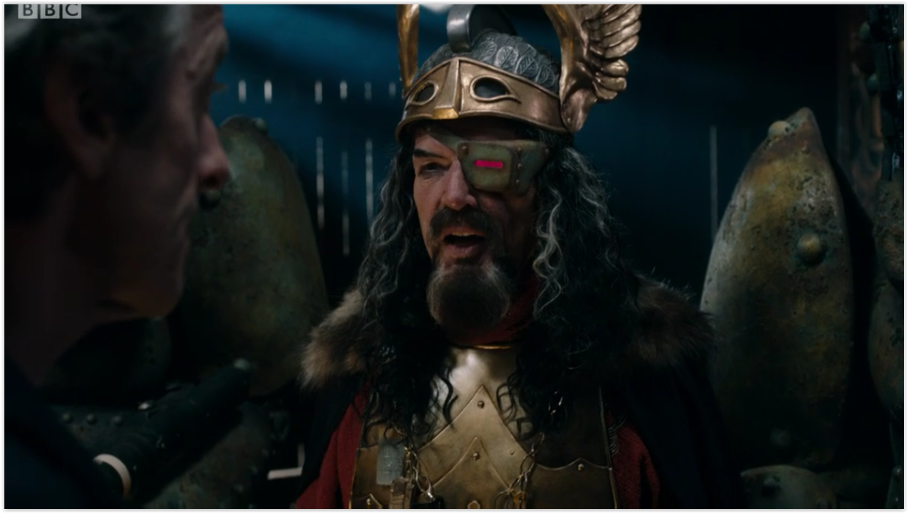 The humour, however, was definitely all Mathieson – it didn’t have that occasional air of excessive cleverness that characterises Moffat gags. Some of it was perhaps a trifle too broad – the jump cut from “right, let’s get the real swords” to the village in flames was inescapably reminiscent of a similar jump cut in Father Ted following Ted’s horrified exclamation, “you let Dougal do a funeral?!” But most of it worked – the Doctor’s attempt to impersonate Odin with a yoyo was marvellously played by Capaldi (“it’s supposed to do that”), and the script perfectly timed its derailment by the ‘real’ Odin. And come on, who wasn’t reminded of Monty Python and the Holy Grail at that point?
