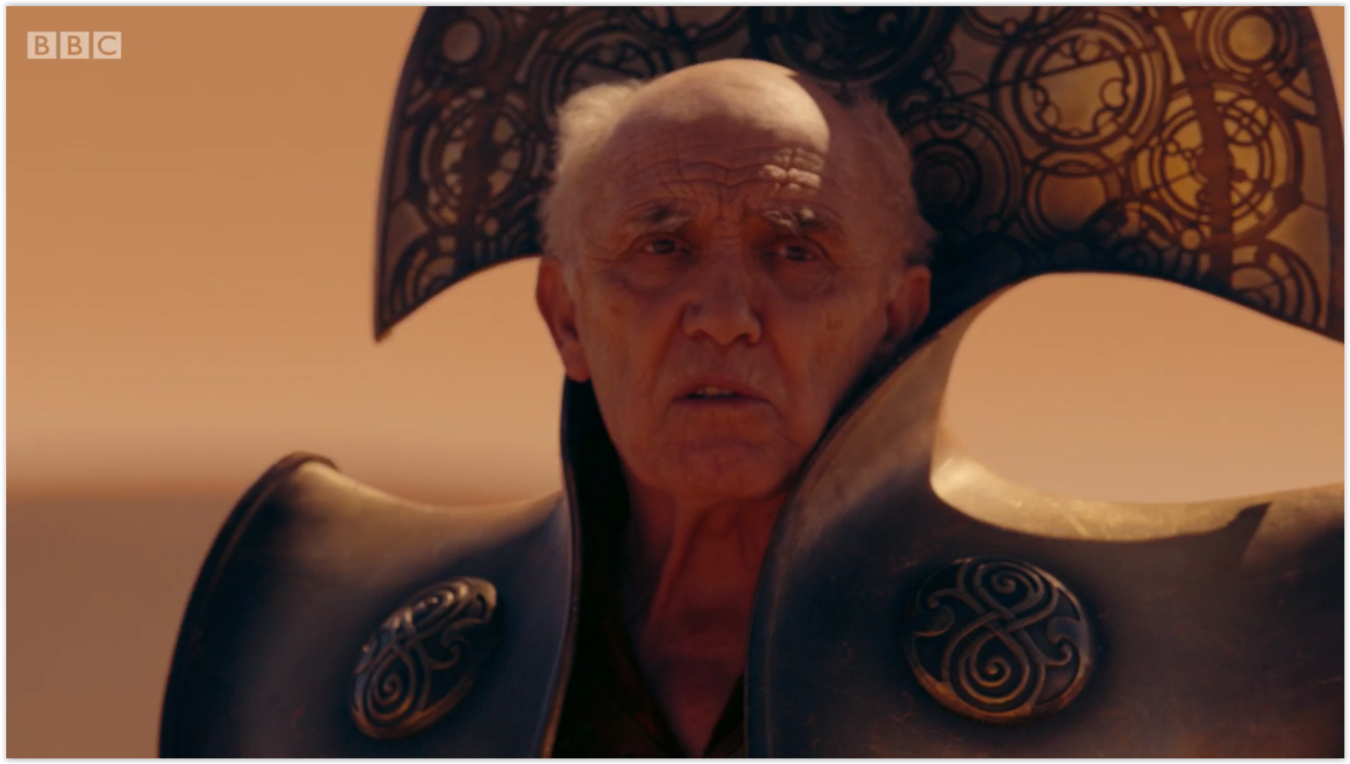 As to the Lord President himself, it was great to see prolific character actor Donald Sumpter back in the show, after 1968’s The Wheel in Space and 1972’s The Sea Devils (he had hair back then). Presumably, this was meant to be a later incarnation of the same ‘Rassilon’ portrayed by Timothy Dalton in The End of Time. But I’m still not clear as to whether he’s meant to be the actual Time Lord founder for whom practically every artefact on Gallifrey is named. He was referred to here as “Rassilon the Resurrected”, so perhaps. And since neither he nor the High Council appeared in Day of the Doctor, I’d assumed they’d left the planet in some way before it was hidden.