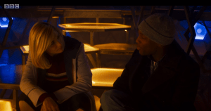 Those scenes were quite sensitively written and played – and crucially, unlike Ryan’s seemingly endless chat with his dad in Resolution, were short enough to provide a breather in the action, rather than completely derailing the story’s pacing. In previous episodes, it’s been Bradley Walsh’s Graham who’s provided the beating emotional heart of the story, but here that was left to Ryan, in a beautifully contemplative two-handed scene with the Doctor.
