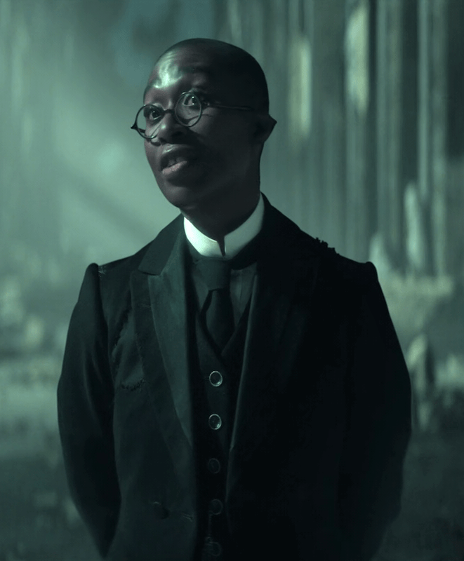 Lucienne is another case in point. Like Cain and Abel, ‘Lucien’ (as he then was) was the host of a horror anthology series, Tales of Ghost Castle. Also like Cain and Abel, he had previously always been depicted as a white man. Here, we get ‘Lucienne’ (the feminine version of this French name), who’s neither white nor a man. But, played by Vivienne Acheampong with the exact same glasses and tailcoat, it’s still obviously the Lucien from the comics. It’s a great performance, and if your problem with it is the actor’s race or gender, then you really didn’t get the point when you read the comics.