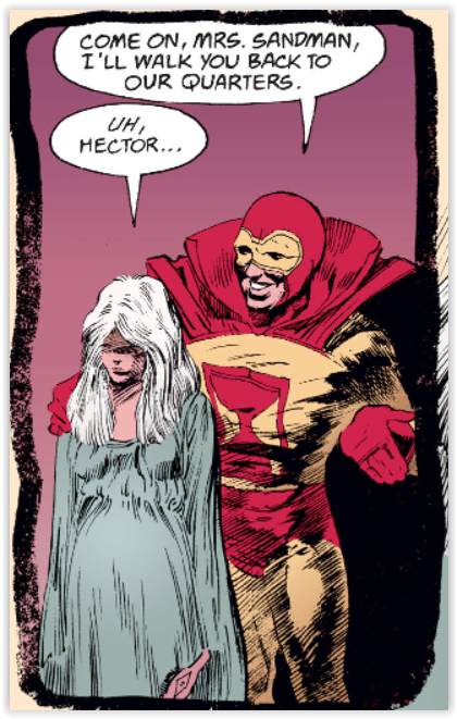 The second Sandman was one Hector Hall, accompanied by his wife Hippolyta (affectionately known as Lyta). Just as in the TV version here, Hector died; but his living wife was imprisoned along with his ghost by two escaped nightmares, Brute and Glob, in their own version of the Dreaming, with Jed Walker as its only dreamer.