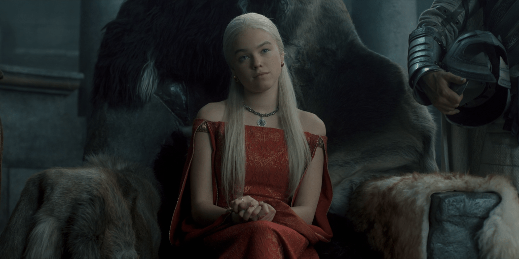 Either way, as a plot point, the idea of Rhaenyra’s uncle getting it on with her is not out of place after the sexual shenanigans of the parent show. It is disturbing though, particularly in light of the debates surrounding GoT’s portrayal of consent (or lack thereof). Certainly Rhaenyra isn’t exactly fighting Daemon off, but it’s still pretty unclear how much she wants what is happening. Plus, Daemon has deliberately stirred up her hormones by taking her to what’s basically an orgy. I think this scene may stir up yet more controversy…