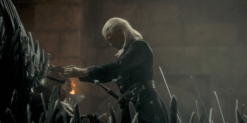 That’s the framework to the ep, and to be sure, it’s an important one. In essence, the fight to inherit Driftmark serves as a rehearsal for the certain war that will begin over succession to the Iron Throne itself. But about halfway through, the ep becomes about something else – the final hurrah of the now horrifically frail King Viserys Targaryen, First of His Name. And with British actor Paddy Considine giving us his all in what’s presumably his swansong in the part, it was a terrifically powerful and affecting last hurrah too.