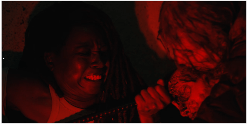 The two characters’ lengthy argument was nicely directed by Michael Slovis again, particularly the intercut shots of Michonne hesitating while walking away, and Rick indecisively hovering his hand over the door handle to go out and follow her. It wasn’t just character drama though – Gurira’s script nicely interjected some actual jeopardy, as the CRM’s destruction of their crashed helicopter caused the building to start collapsing around them, letting in a horde of hungry Walkers.