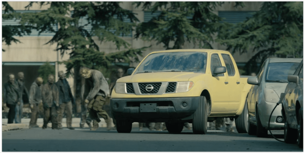That also fits with the etched iPhones which were so prominent in the plot; they’re iPhone 3Gs, the third generation of a smartphone that’s now on its fifteenth, but will get no further in The Walking Dead. And it’s why Rick and Michonne are currently fleeing the CRM in a makeshift electric Nissan pickup with a trailbed full of batteries and an ethanol hybrid conversion. This is a world where mass-produced electric cars never came to be. That end-of-the-world dating is going to get less and less subtle the more the real world changes from how it was in 2010, fourteen years ago now.