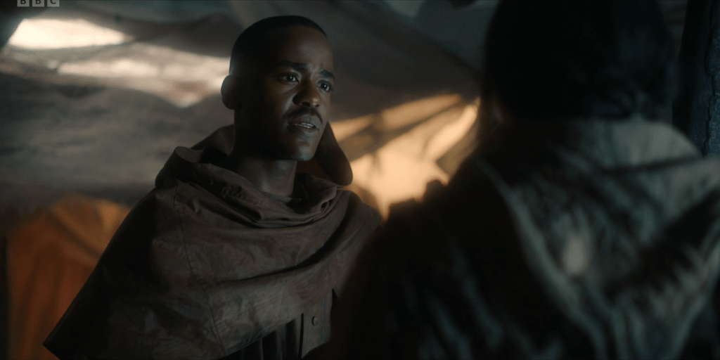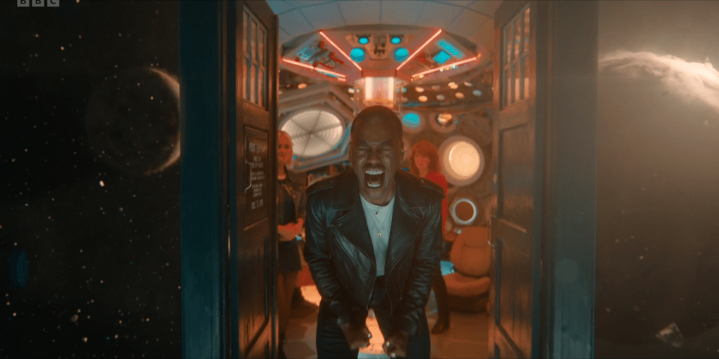 Still, while the rest of the story rendered it somewhat moot, that later-nullified timeline gave us that one beautiful scene of the Doctor encountering a lone survivor (Sian Clifford) in the few minutes before she, too, disintegrated into dust. It was a melancholy but lovely scene full of hope and anger, beautifully played by Clifford and Ncuti Gatwa. In the grand scheme of the story, it didn’t amount to much, and could easily have been omitted – the Doctor could have easily found a spoon just lying around, or indeed, not needed one at all. But I’m glad the scene was there. Not only was it beautiful, it served very much as a statement of who this Doctor really is.