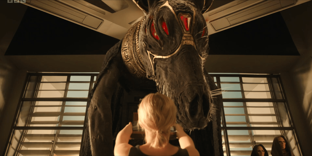 Because it turned out that the only real reason Sutekh hadn’t killed the Doctor or Ruby is that he can’t abide an unsolved puzzle, and he too was just as intrigued as the viewers as to the identity of Ruby’s mother. Some people have found this a trifle unbelievable, but given what we learned about the Osirans and their love of riddles in their first appearance, it actually makes sense.
