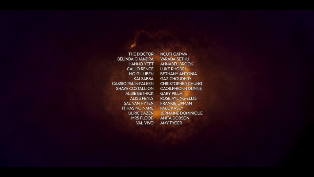 Varada Sethu continues to have great chemistry with Ncuti Gatwa, who is really into his stride as the Doctor now. His face as he realises what is going on, set in determination and horror, very much sells the jeopardy of the situation in a way that’s quite reminiscent of David Tennant (fittingly enough for a sequel to a Tennant episode). I’m glad to see that this season, it looks like the Doctor will be front and centre in every episode, rather than mostly missing as he was for a quarter of the previous season.