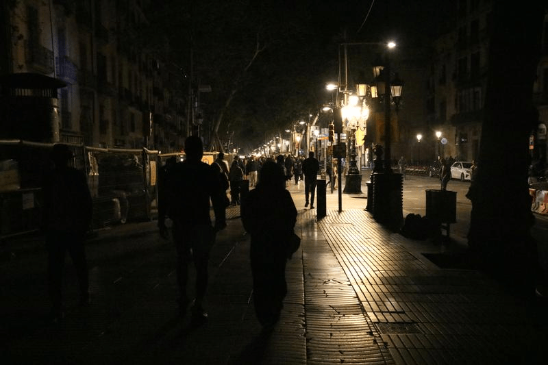 I didn’t know then of course, but it was going to last a lot longer than I expected. And be… a little more widespread than just El Gotico. I had afternoon and evening classes, and my job is a 16km journey out of town to the technically separate city of Sant Just Desvern. I’m currently suffering quite badly with sciatica, so I’ve been taking the Metro rather than my usual e-scooter; heading towards Urquinoana Metro, I noticed that the lights in the shops and cafes were off everywhere. Traffic lights were off too. A larger amount of people than usual were roaming the streets, and I noticed many of them waving their phones in the air, that modern dance of desperately searching for a signal.