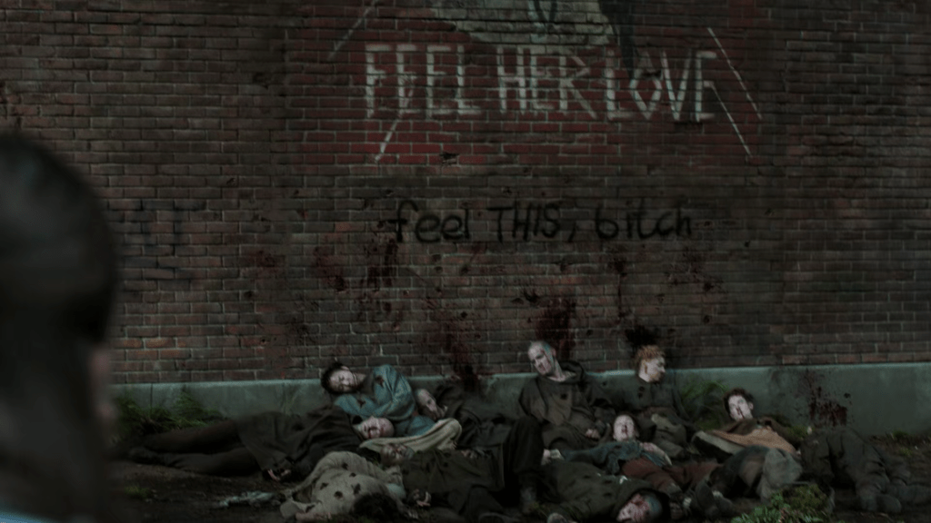 More than ever, these scenes cemented the fact that, deep characterisation aside, this is a horror show you’re watching. The Seraphite priest’s disembowelling of that helpless captive was brutal and medieval; while the fungal growth all over the walls in the B2 hospital level, with embedded victims, was obviously a nod to similar scenes in Aliens.