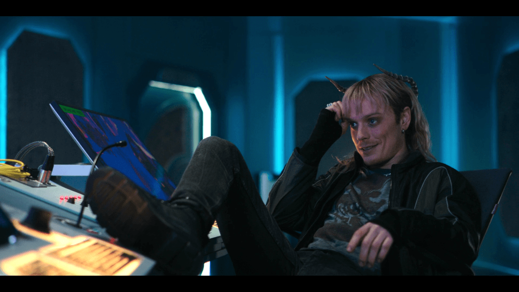 All these Big Revelations unfortunately overshadowed the, let’s face it, rather slight main story here. Yes, it worked… ok as a tribute to the Eurovision Song Contest, but its attempts at profundity were slapdash at best. As an earnest critique of corporate greed, this was nowhere near the level of Jamie Mathieson’s excellent Oxygen from way back in 2017. That ep also involved a far more realistic (and gruesome) depiction of the real effects of being stuck in space without a pressure suit (spoiler – it doesn’t just freeze you). Mind you, this is the self-same Doctor who once ventured into space with only a helmet and a cricket ball to propel himself to safety, so it’s probably a bit churlish to complain about using a confetti cannon to do the same here (“Camp.”).