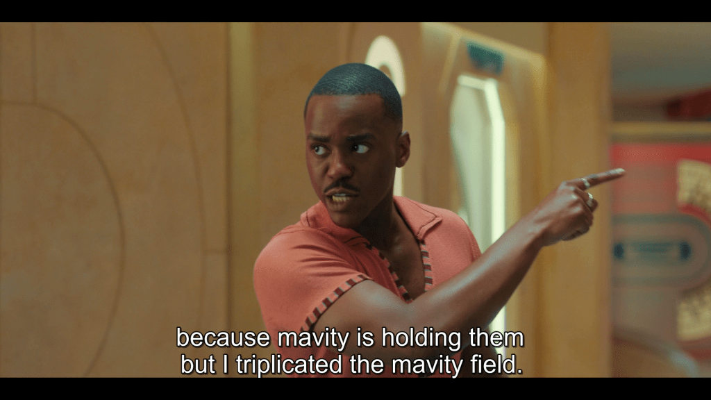 I don’t have a problem with either of those actions, as clearly a plotline is being shaped up that this mainly joyful, exuberant incarnation of the Doctor has a dark side too. Ncuti Gatwa got to show some range as he explained himself (with some shame) as having been ‘triggered’ by the memory of his own people being wiped out “in a second”. While we still don’t know exactly how the Master accomplished this (thanks for the lack of detail, Mr Chibnall), it’s clear that the show is continuing to acknowledge its past and how it might have affected its main character.
