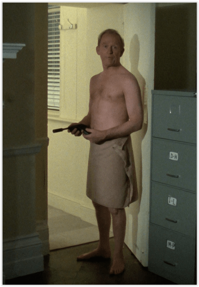 Further shenanigans ensue as Ramos heads to London to try and take out Cowley at the CI5 HQ itself – you can’t fault his confidence. Unfortunately for him, this is Cowley he’s dealing with, and not even shooting his own henchman just to get into the building will guarantee success. An unwise attempt to shoot Cowley in his office shower just results in Ramos finally getting caught – and in a fetching shot of Gordon Jackson clad only in a towel.