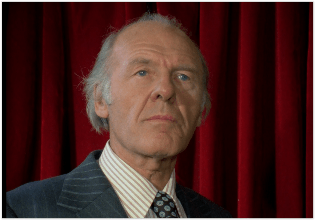 As for would-be burglars Sammy and Walton, both are played by prolific actors usually better known for comedy roles: Robert Gillespie and Peter Cellier, respectively. Gillespie, who’s 91, was still working as recently as 2018, as a judge in Mike Leigh’s Peterloo; though he’s probably best known as the star of 70s sitcom Keep it in the Family. Cellier, who was usually cast as oily officials and/or executives, is probably best known as Sir Frank Gordon, Permanent Secretary to the Treasury in Yes Prime Minister.