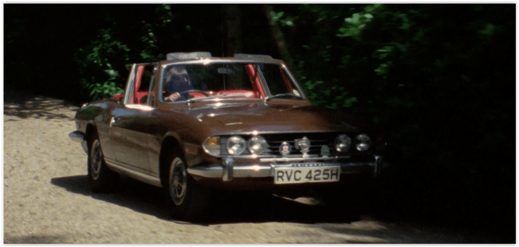 Mitchell’s daughter is kidnapped returning from a drive in her shiny 1970 Triumph Stag, a grand tourer that was Triumph’s flagship model in the early 70s. Again, it’s a trifle odd that, with British Leyland providing the cars, they couldn’t have given her a new one, rather than one that was seven years old. Particularly as by that age, Stags had usually already had lots of problems with their troublesome all-aluminium engines.