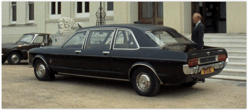 Harbinger, meanwhile, is collected from the conference in a 1972 Ford Granada Coleman Milne limousine. Amusingly, the usually very thorough Andrew Pixley has got a bit confused here, as his voluminous Production Notes list “Coleman Milne” as an actor playing Harbinger’s chauffeur.