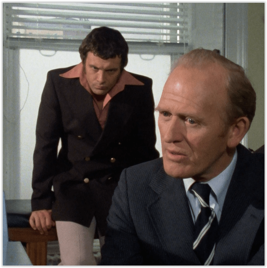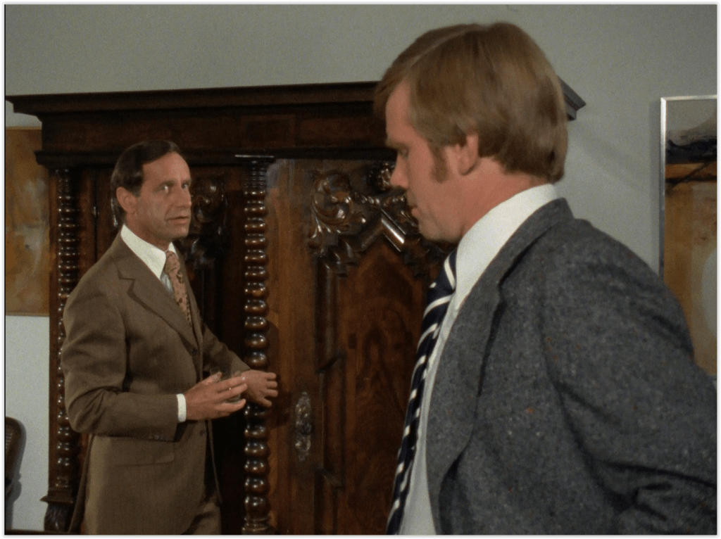Bodie’s out of leather this week, starting the ep in a fancy-looking double breasted jacket, in the standard 70s shade of brown. His shirt is fairly restrained, with the collars only very large rather than gobsmackingly massive.