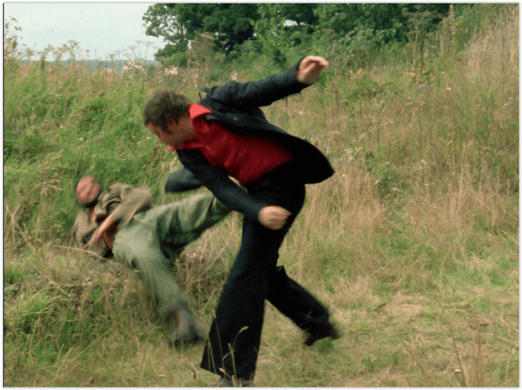 So finally Krivas is cornered, and could presumably be arrested. But of course that’s not enough for Bodie, who still has his score to settle. He therefore takes on the ruthless mercenary leader in a lengthy punchup, in which you can almost smell the testosterone. The result takes place offscreen, but of course Bodie, slightly the worse for wear, has won: “You should see the other feller”.