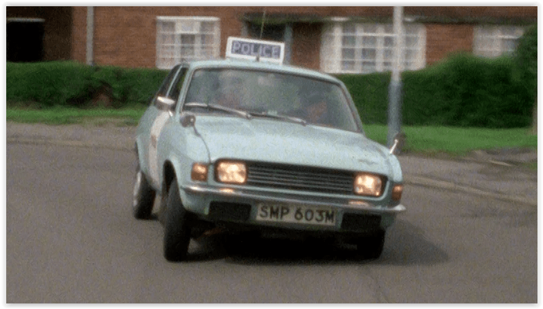 A variety of police cars this week, with the ubiquitous Triumph 2000s making several appearances; but also the less than high speed Austin Allegro, and a Rover 2000TC. Both of the latter end up with shattered windscreens as a result of machine gun fire – that’s how big the budget was, they could afford to replace two windscreens.