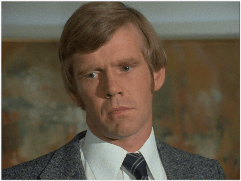 Also well-known to Doctor Who fans is Jeremy Bulloch, playing Sinclair’s henchman “Aggro Charlie”. Outside of his Who role as Hal the Archer in 1973’s The Time Warrior, though, he’s far better known for a role where you never actually see his face – Boba Fett in the original Star Wars trilogy.