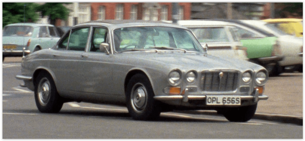 The Jaguar XJ6 that Georgi drives over from Europe is a series 1 (manufactured from 1968 to 1974) – so it’s rather odd that it has an S suffix on the number plate, indicating it to be from 1977 and therefore brand new. That’s probably because we have to see CI5 completely dismantling it for forensic purposes, and a new one would have been too expensive.
