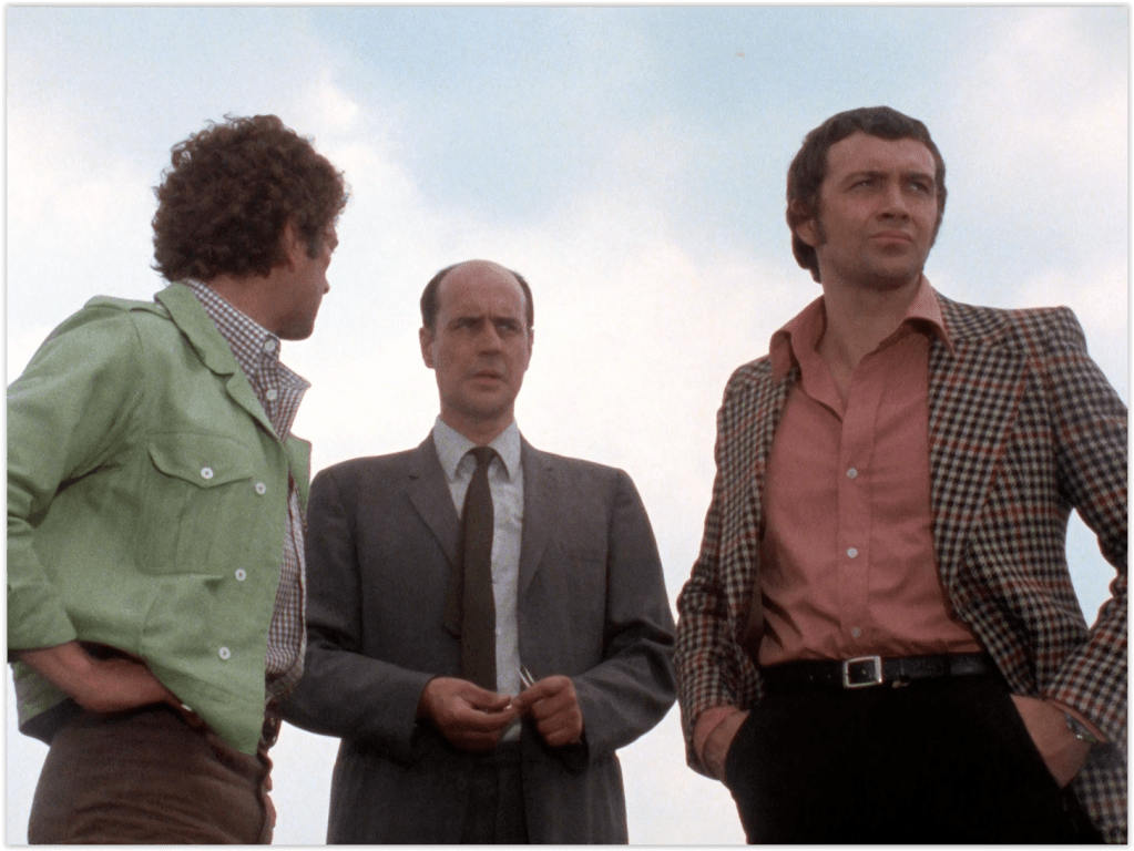 However, without having that explicitly spelled out, I must admit that the first person I thought of who could be described that way (“a top dignitary with Greek connections who’ll be in the Royal Box”) was our very own Prince Philip – particularly since said dignitary’s car is first shown driving past Windsor Castle. I was half-expecting stock footage of the irascible Royal to feature in the climax, but of course I shouldn’t have been; British TV was still hugely deferential to the Royal Family in the 70s, and that would probably have been considered Going Too Far.
