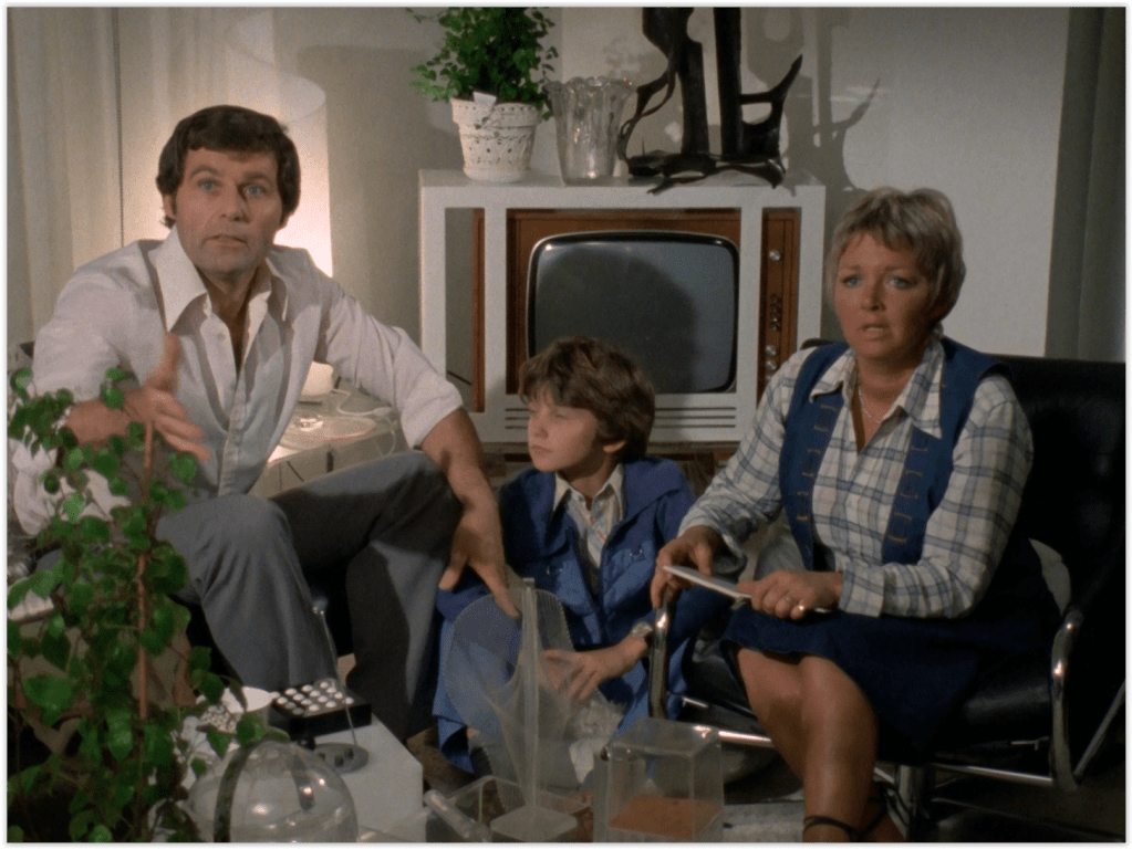 The hostage situation gives us a glimpse into the typical middle class British family of the 70s, and the décor of their apartment. Which is, predictably, mostly different shades of brown.