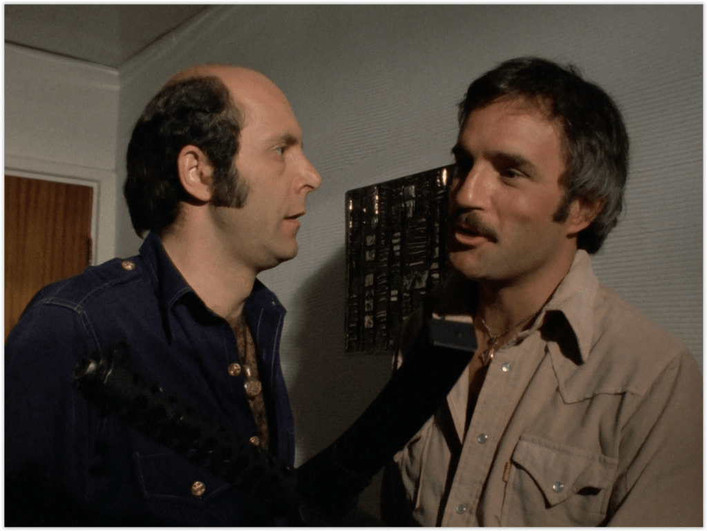 Another incredibly prolific character actor, Antony Carrick, can be seen here as CI5’s expert crime scene boffin Mervin. Carrick appeared in small roles in just about every British TV show in the 70s and 80s, though he may be best known as Jim Hacker’s press secretary Bill Pritchard in Yes, Prime Minister.