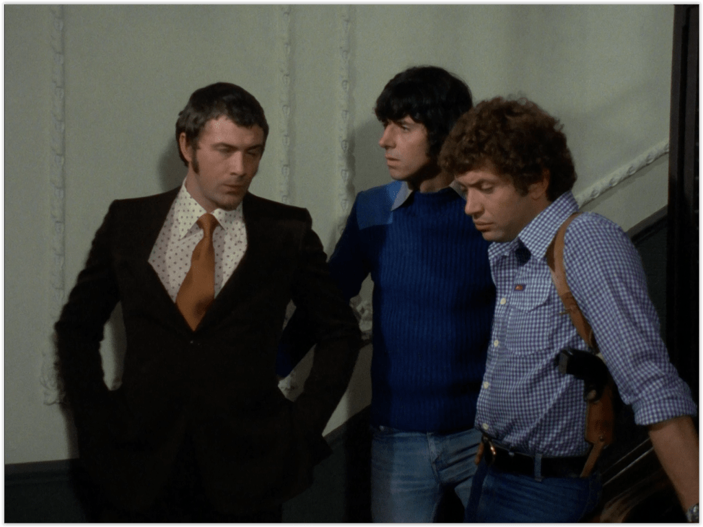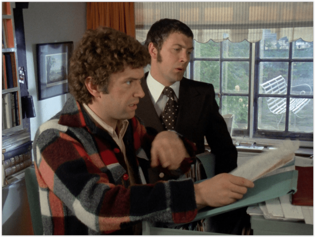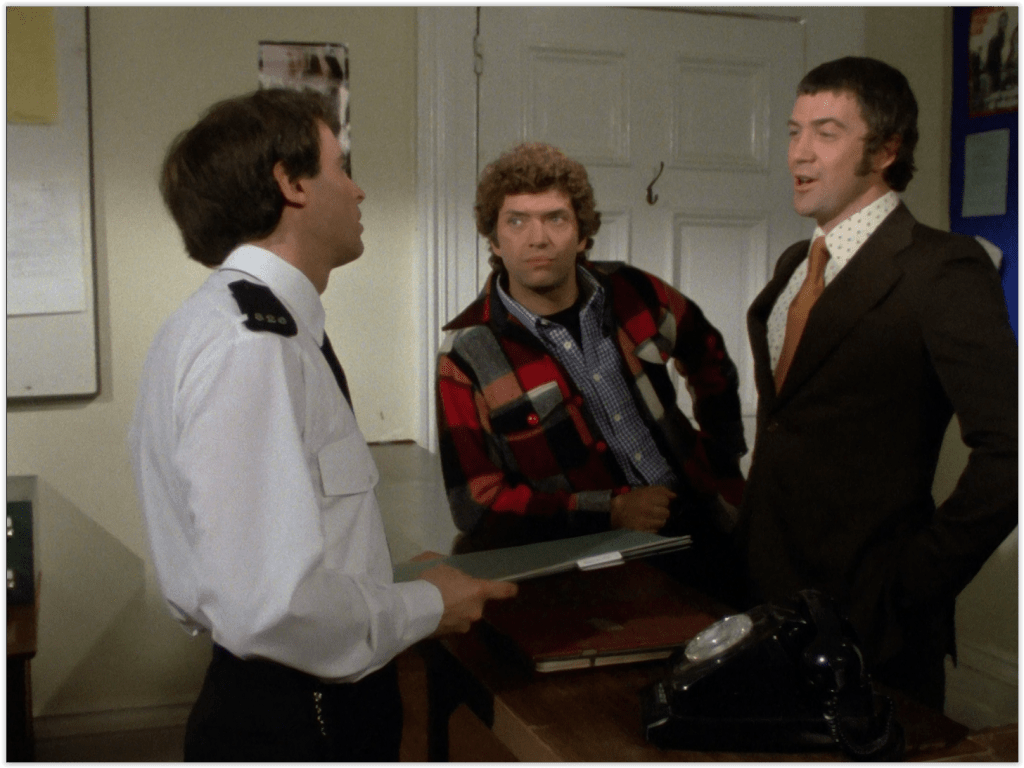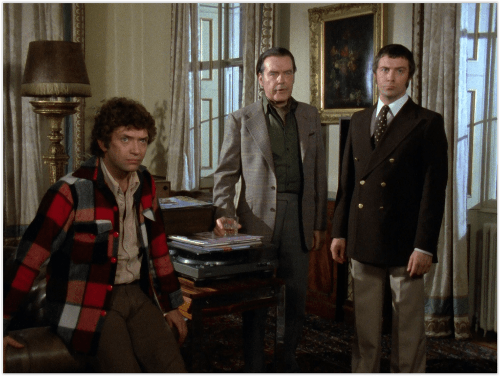 Everest Was Also Conquered is a pretty slight, straightforward tale by the standards of this show, with a very clear central plot that it doesn’t deviate from. It does have some pretty good action, which I suspect was necessary to fill out the running time, but I’m not complaining. Probably for the same reason, there’s a lot of dialogue scenes, but they work well at fleshing out the characters, dwelling on subjects like Doyle’s hatred of filing, Cowley’s passion for “pure malt” whisky (“there’s no ‘particularly good’ one – they’re all good!”), and Bodie’s irritation with the upper class.