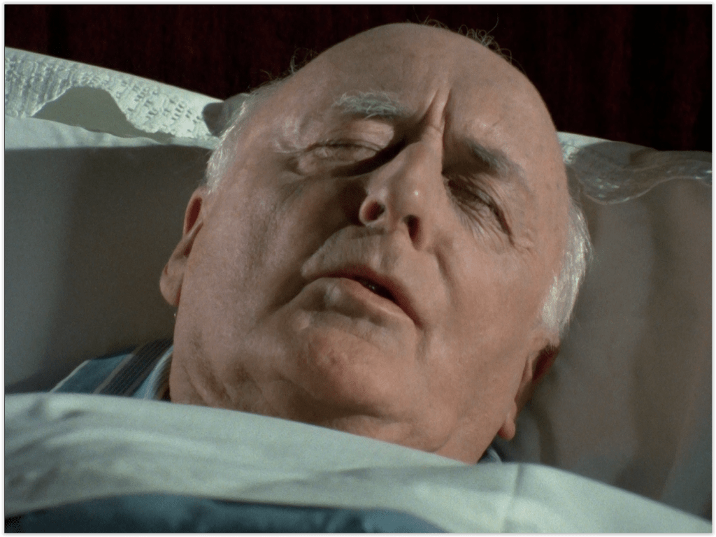 Expiring within minutes of appearing as dying lawyer Arden French is veteran Welsh actor Llewellyn Rees. Doctor Who fans may remember Rees for similarly expiring within minutes of appearing as the assassinated Time Lord President in The Deadly Assassin.
