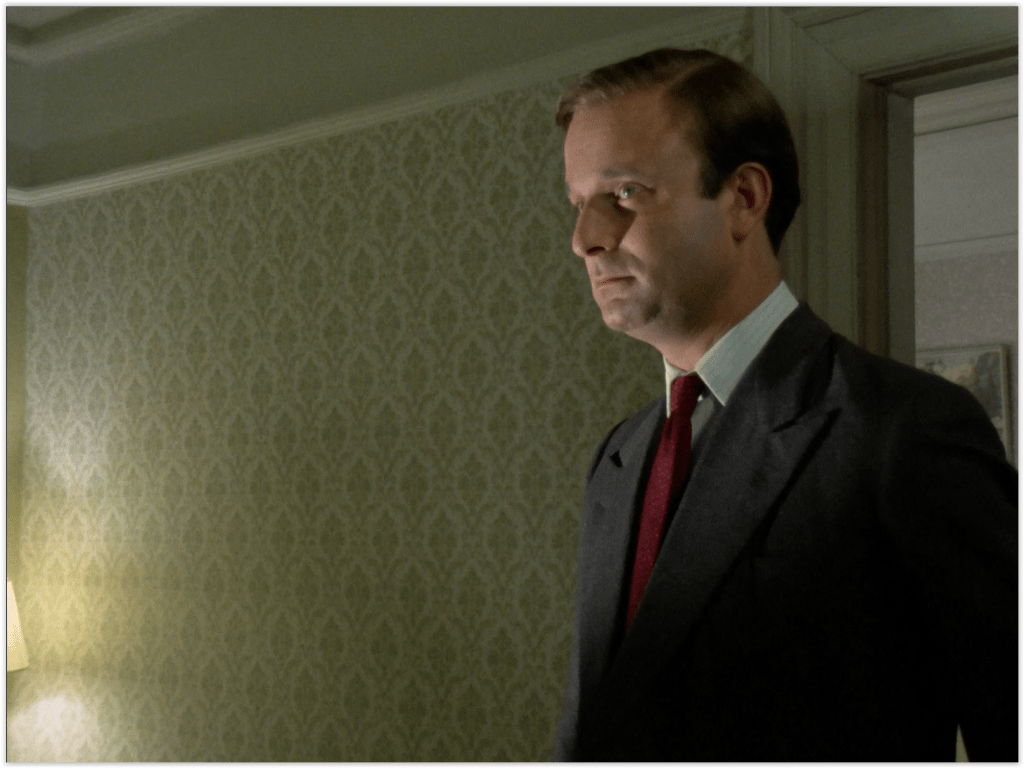 The flashbacks to 1953 never entirely convince, due to the ep’s policy of using the same actors to play the characters in both time frames, with what seems like a minimum amount of makeup. The conscience-stricken Turner, in particular, doesn’t seem to have aged a day between 1953 and 1977, merely taken off his toupee.