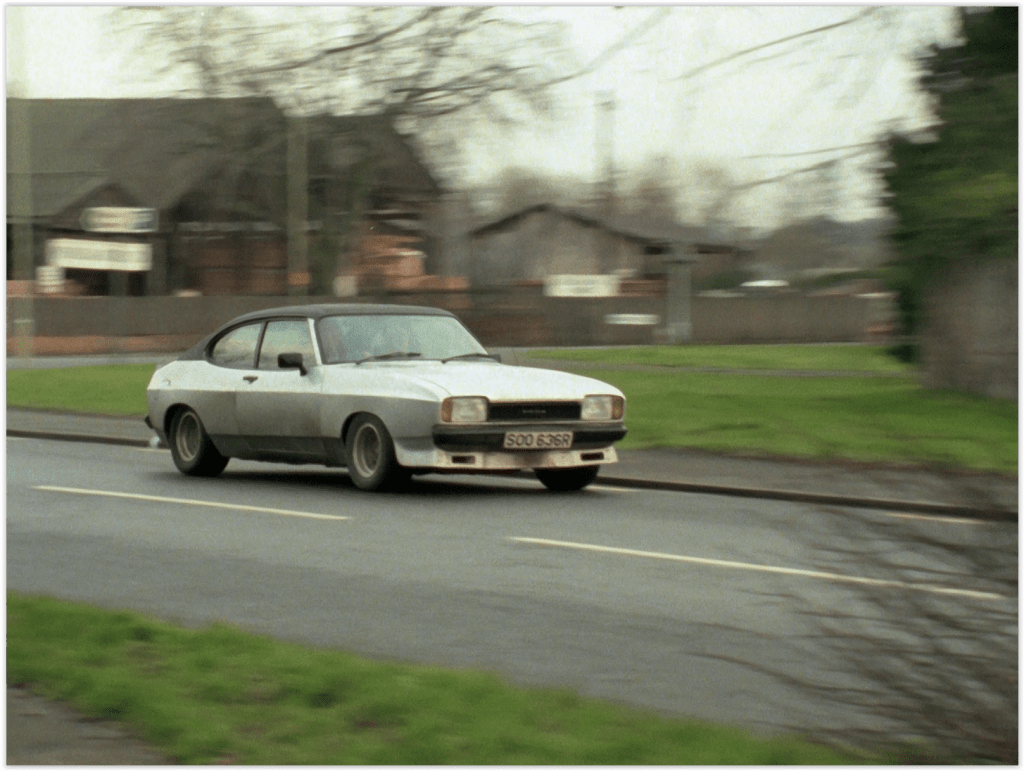 Not yet the double-headlighted MkIIIs that the show is remembered for, and in fact Bodie is seen driving two Capris in this one. The first probably wasn’t supplied by Ford themselves, as it’s a sporty looking MkII with aftermarket lowered suspension, front spoiler, and wheelarches as flared as a pair of 70s trousers.