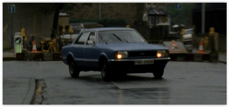 For a bit of variety, the boys are driving a blue Ford Cortina MkIV when they go to arrest Frank Goodman. This makes sense, as the low-slung, two-door Capri would be a bit of an effort to get a suspect into the back of.