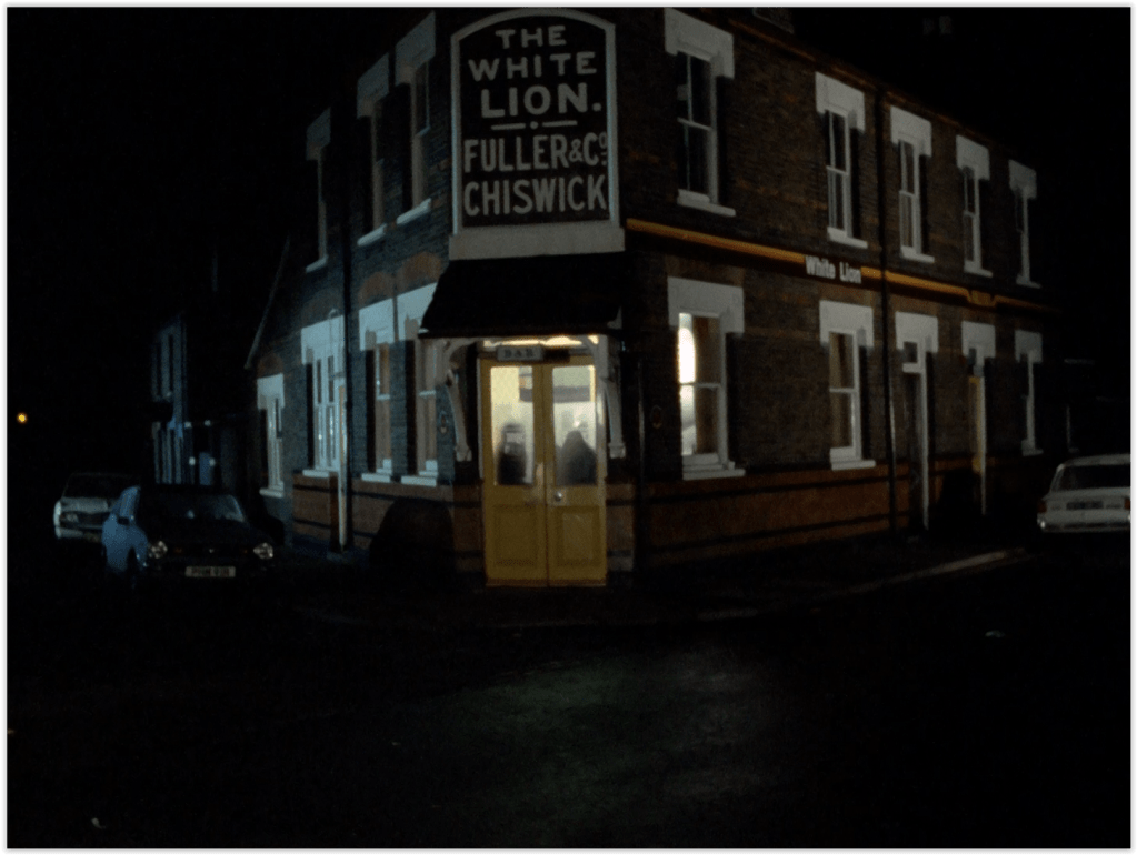 There’s some nice footage of what I think is Rickmansworth High Street as Bodie and Doyle tail Goodman. Goodman clearly likes a flutter on the horses, but the plain-windowed bookie he visits (“NH Levy – Turf Accountant”) looks a lot more respectable than the likes of Paddy Power today.