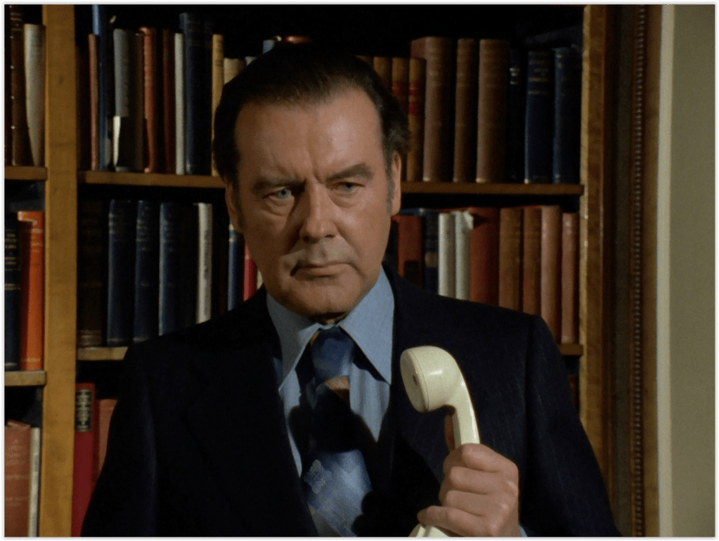 Cowley’s ‘old friend’ Lord Peter Derrington is played by Michael Denison. More of a theatre actor than a screen actor, Denison can be seen playing Algernon in Anthony Asquith’s 1952 film of The Importance of Being Earnest.