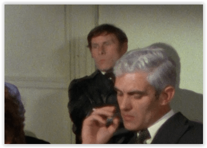 And if you look closely, you’ll see the second appearance in the show of legendary non-speaking actor/ascended extra Pat Gorman, hanging around in the briefing room, then later off with the CI5 team at the scene where the cars are found. Gorman was last seen as the unfortunate golfer a few weeks ago in Killer With a Long Arm, and knowing him, this won’t be the last time we see him.