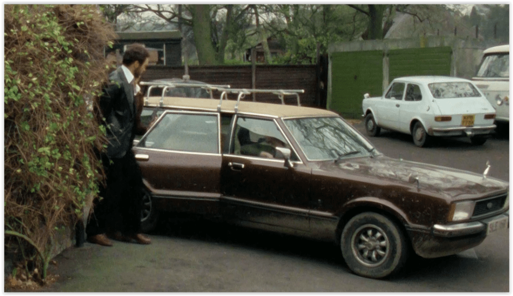The terrorists, being German, are driving a 1973 Audi 80LS, the most nondescript German car imaginable. It still screamed, “we’re German” in the 70s though, to a country who mostly bought British, suggesting that the terrorists are not all that good at covering their tracks.