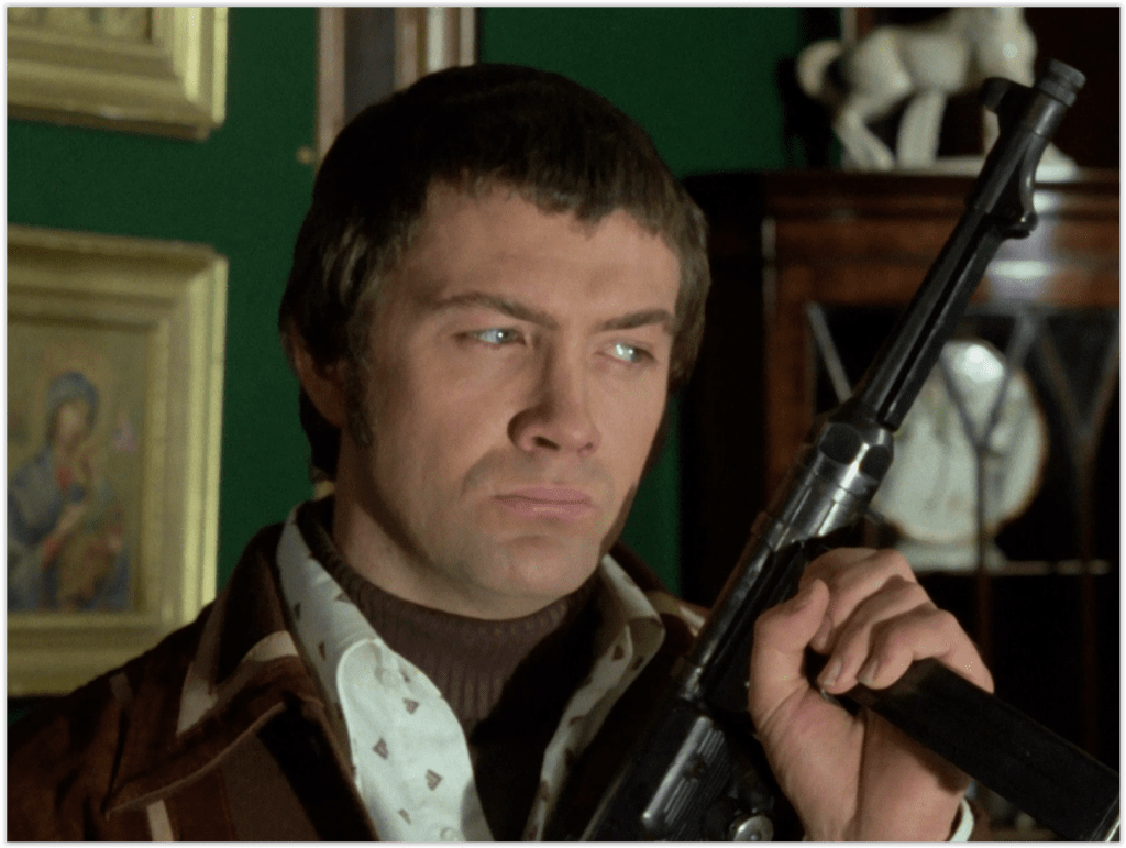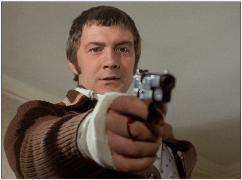 That’s a very early appearance from a young David Bradley as terrorist number 2, er, 3, maybe, Kristo. Bradley, who found fame later in life, is probably best known for playing a succession of sour-faced, bad-tempered old men such as Argus Filch in the Harry Potter films, Walder Frey in Game of Thrones, and William Hartnell in Doctor Who.
