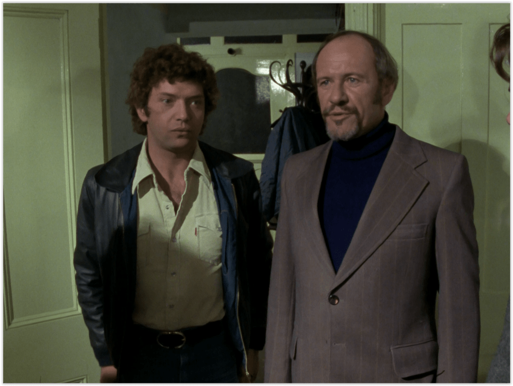 Chief among the guest stars here is Tony Booth, as ultra-racist estate agent and thug Dinny. Booth was already well-known to TV audiences as Alf Garnett’s “long-haired layabout” son-in-law Mike in Til Death Do Us Part, another anti-racism show whose message didn’t really work. Later, Booth would become famous in the rather more surprising capacity of being Tony Blair’s father-in-law.