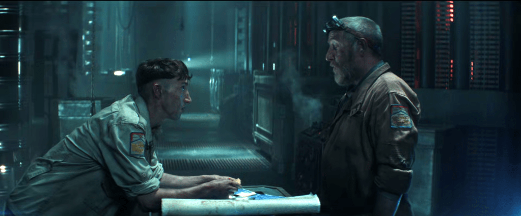 Micheal Smiley’s engineer Shmuel is much more sanguine about the fact that his wife will be ancient or dead by the time he returns – maybe it wasn’t the happiest of marriages. That, he explains to his loveably dim apprentice Malachite, is why they get paid the big bucks. Or shares, in fact. Echoing the original Alien, the script tells us that this is what they get paid in, with Morrow echoing Ash in explaining that the penalty for failure is “total forfeiture of shares”.
