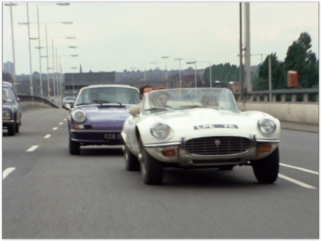 His pursuer Preston too has an iconic classic sports car – a Porsche 911E in an eye-meltingly horrible 70s shade of purple. The 911, still in (much-evolved) production today, could trace its lineage and design philosophy to the humble Volkswagen Beetle (though Porsche fans usually don’t like to mention this).